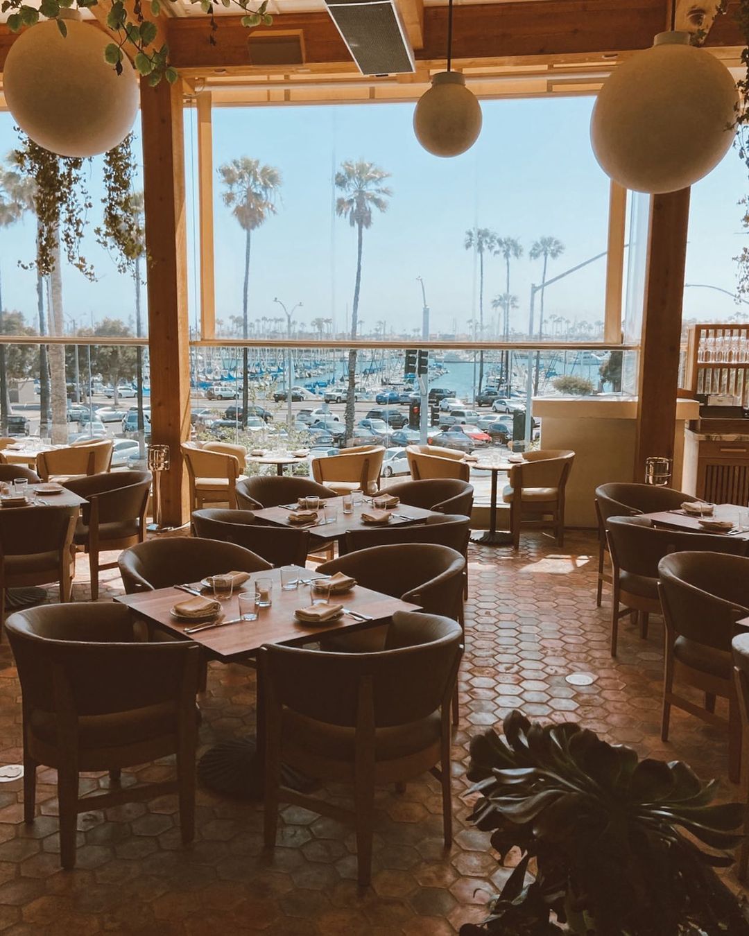 Putting a fresh twist on the traditional California bungalow, this Lomg Beach eatery has a rustic edgy ambiance that's both eclectic and congenial. A wildly diver diverse palette of styles and materials includes metal, marble, wood, and of course, loads of leather by Tiger Leather.