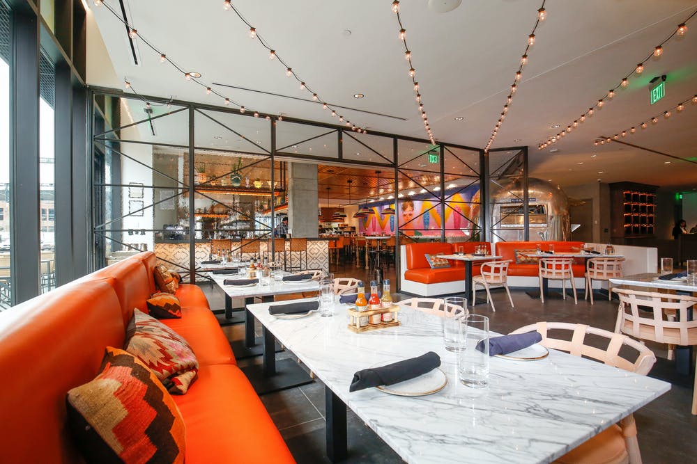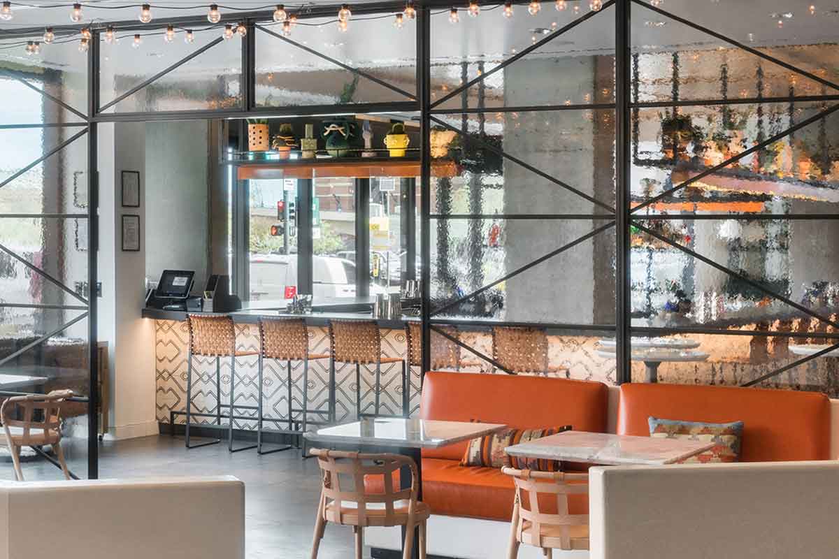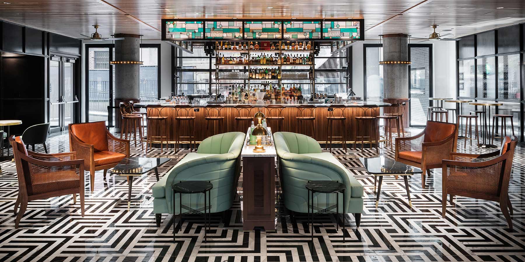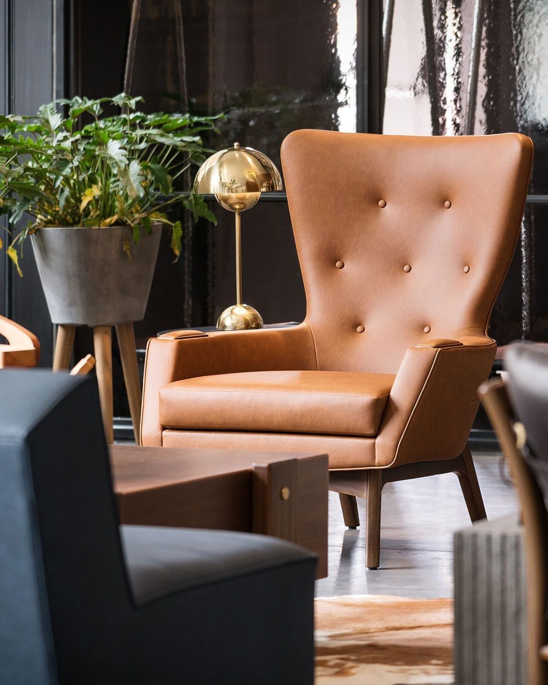 The interior of this eight-story hotel uses a distinct palette of industrial materials that give the space an urban, loft feel. Tiger Leather outfitted many of the common area furnishings, including select sofas, chairs, and booth seating in the adjacent Kachina Cantina and Poka Lola Social Club.