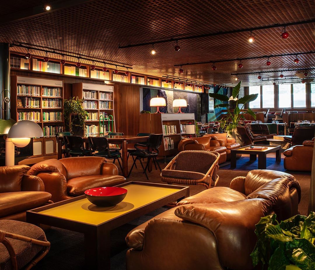 The Standard London is a colorful counterpart to its Brutalist structure. Inside the vibrant Library Lounge, for instance, an overstuffed couch in our Old Town Wheat article juxtaposes the lounge chairs upholstered in Chamonix Rouge - a compliment to the room's bold red accents.